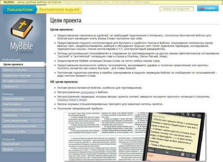 Ко мне порою по электронной почте обращаются с просьбами о разрешении использовать тексты "Эталонной Библии русского синода" для употребления в своих проектах распространения Библии. Соответственно даются ссылки на сайты с информацией о проектах. Знакомясь с ними, зачастую бывает трудно понять: является ли проект коммерческим, т.е. предусматривающим получение материальной прибыли от распространения Библии, или же он является полностью безвозмездным, позволяющий каждому пользователю свободно получать библейскую информацию с этого проекта. Конечно, в таких случаях, приходится дополнительно выяснять этот вопрос у обратившегося представителя проекта. Понятно, что времени при этом уходит много, чтобы решить вопрос по существу. Вместе с тем, 28 сентября 2015 года ко мне обратился представитель проекта программы "MyBible" Олег Сафонов (osafonov@gmail.com; oleg@mcdsoft.ru) за разрешением использовать тексты "Эталонной Библии русского синода". Им также была дана ссылка на сайт их проекта: http://mybible.zone. Скриншоты этого сайта приведены справа, кликнув по ним, сможете их увеличить. Крайне приятно было обнаружить, что уже на сайте авторы проекта отметили, что не имеют целью получение прибыли от распространения Библии через программный продукт своего проекта. Безусловно, что в данном примере разрешение обращения осуществилось в крайне короткое время, мы охотно дали свое разрешение на использование наших материалов, подчеркнув при этом, что именно бесплатное распространение Библии, является главным условием нашей работы, особенно, когда речь идет о цифровых технологиях. Аналогичная ситуация сложилась и 01 декабря 2015 года, когда ко мне обратился представитель проекта программы "Цитата из Библии" Владимир (к сожалению свою фамилию он почему-то не указал - delovery@mail.ru; электронный ID его письма: 1448956753.728217200@f297.i.mail.ru) с запросом на разрешение использовать и в их проекте тексты "Эталонной Библии русского синода". Адрес сайта проекта программы, указанного им: http://www.moscowseminary.ru/index.php/students-menu/bqt-menu/172-bqt-win. Вопрос был также решен в этот же день. Вместе с тем, даже подобного рода обращения отнимают у нас некоторое драгоценное время, которого, как вы все понимаете, в жизни благочестивых людей очень и очень мало. Учитывая такую ситуацию и с целью экономии времени каждого из нас, мы убедительно просим распространителей Библии, которые в своих действиях преследуют коммерческие интересы, не утруждать нас своими запросами на использование наших материалов в их проектах. Для всех же остальных распространителей, как бы автоматизируя весь процесс решения этого вопроса, представляем нижеследующую информацию. Мы никому не даем разрешения на использование наших материалов в коммерческих целях, так как считаем, что распространение Библии за плату - тяжкий грех перед Единым Богом Милостивым и Милосердным Господином всех Миров, спасающем нас Помазанием, благословенно Его Имя и свято во веки веков. С другой стороны, распространители Библии, которые не ставят в своей деятельности извлечение материальной выгоды, а предоставляют возможность всем желающим пользоваться их продуктами - версиями Библии - бесплатно, - могут использовать материалы "Эталонной Библии русского синода" свободно и без обращения ко мне за разрешением. Автором и собственником текстов "Эталонной Библии русского синода